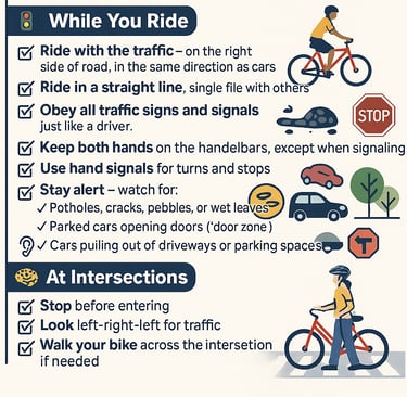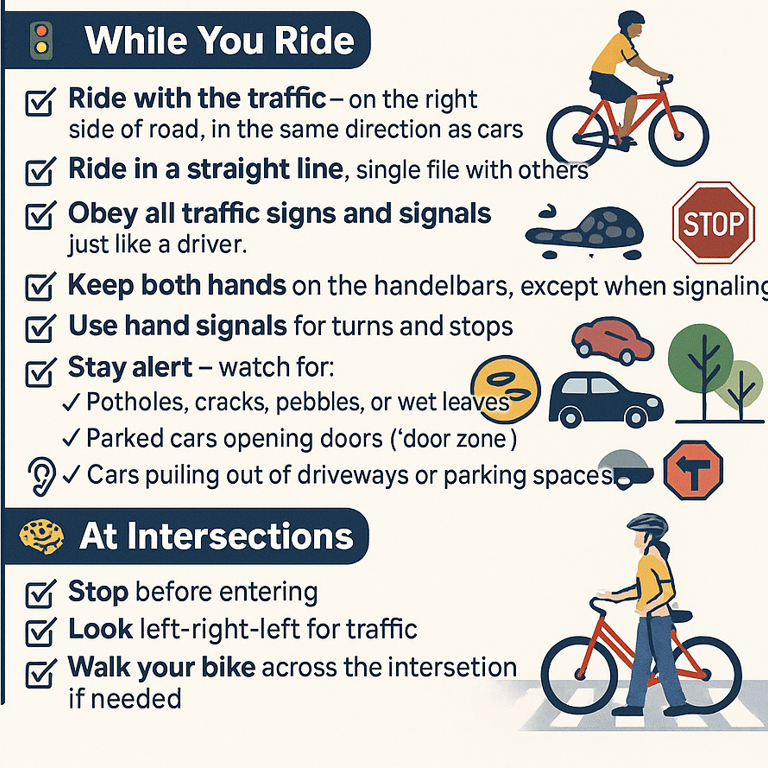 Ride with the traffic — on the right side of the road, in the same direction as cars.