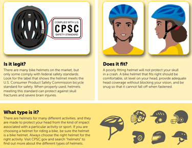 Is it the right type? if you are riding a bike, use a helmet designed for bicycling (not one for another sport).